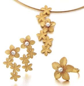 With his sophisticated collections, fascinating and convincing via their clear, reduced forms, he rapidly succeeded in taking the global jewelry markets by storm. Together with his wife, the jewelry designer Yvonne Wolf, he develops jewelry collections of unmistakable beauty, capturing the zeitgeist perfectly. Bernd Wolf was one of the first jewelry producers to establish gold-plated silver on the market. In addition to his successful silver collections, the majority of his contemporary jewelry creations are equipped with this extremely durable form of gold plating, which almost has the same properties as fine gold. In association with fascinating surface structures, lovingly hand-crafted, Bernd Wolf's jewelry is both unmistakable and easy to combine. His most recent coup is appropriate for the floral trend of the "Blooming" collection, with gold-plated sterling silver and freshwater cultured pearls.