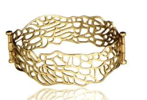 In 1991 the New York designer Cynthia Gale launched her first collection, entitled GeoArt. On her journeys through the Far East she had encountered - and learned to love - the art of gold repoussé. Her collection can now be found in over 15 leading North American museums, including the Washington National Cathedral, the National Gallery of Art, J. Paul Getty Museum, American Museum of Natural History, the John F. Kennedy Center for the Performing Arts, Rock and Roll Hall of Fame and the DeYoung. Her contemporary jewelry designs have a cultural, historic or spiritual background.