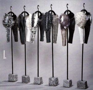 - Plaster castings, limited-edition pieces. The "pure" plaster casting is first worn, then cast in stainless steel or gold