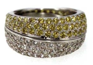 - Rings with a twist: white gold, yellow and white brilliant-cut diamonds. Moments in time. Time passes in rhythms. Intuitive twisting of one's ring in a moment of distraction is a game of time, its passage and rhythm. A turn of the two halves of the ring reveals a new ring, different in all its dimensions; another turn, and the ring is closed again - a new rhythm begins