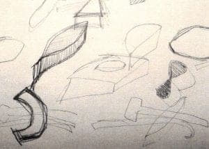 These pieces begin life in Flynn's workmanlike sketchbooks, each page filled with process, as if talking to himself, and in a quieter way one can see ideas being turned over and over in his mind. They also contain the germs of Flynn's philosophy of art and life, as he muses to himself at the end of the day. On the last page of one large spiral bound pad he writes that "the back of the piece may be the most important part. What doesn't appear in the slide. Like the unseen, what doesn't appear in people may be the most important as well, the part that doesn't show, what people hide….The people who take the time to flip the piece over, actually get to see the guts, the underbelly, the bottom of a turtle, the insides of a really fine watch. They get to see my world…." Like the artist himself, the sketchbooks are private, some measurements, precise renderings of ideas, but in a way always something a little held back, as if proof of his belief that the magic should be saved for the bench. As Flynn works, he likes to leave a little bit unsaid; as a result people talk of his restraint. "It's important for me not to completely understand certain elements of my work." Like a Japanese potter, he believes "if you think too much things lose their spirit."