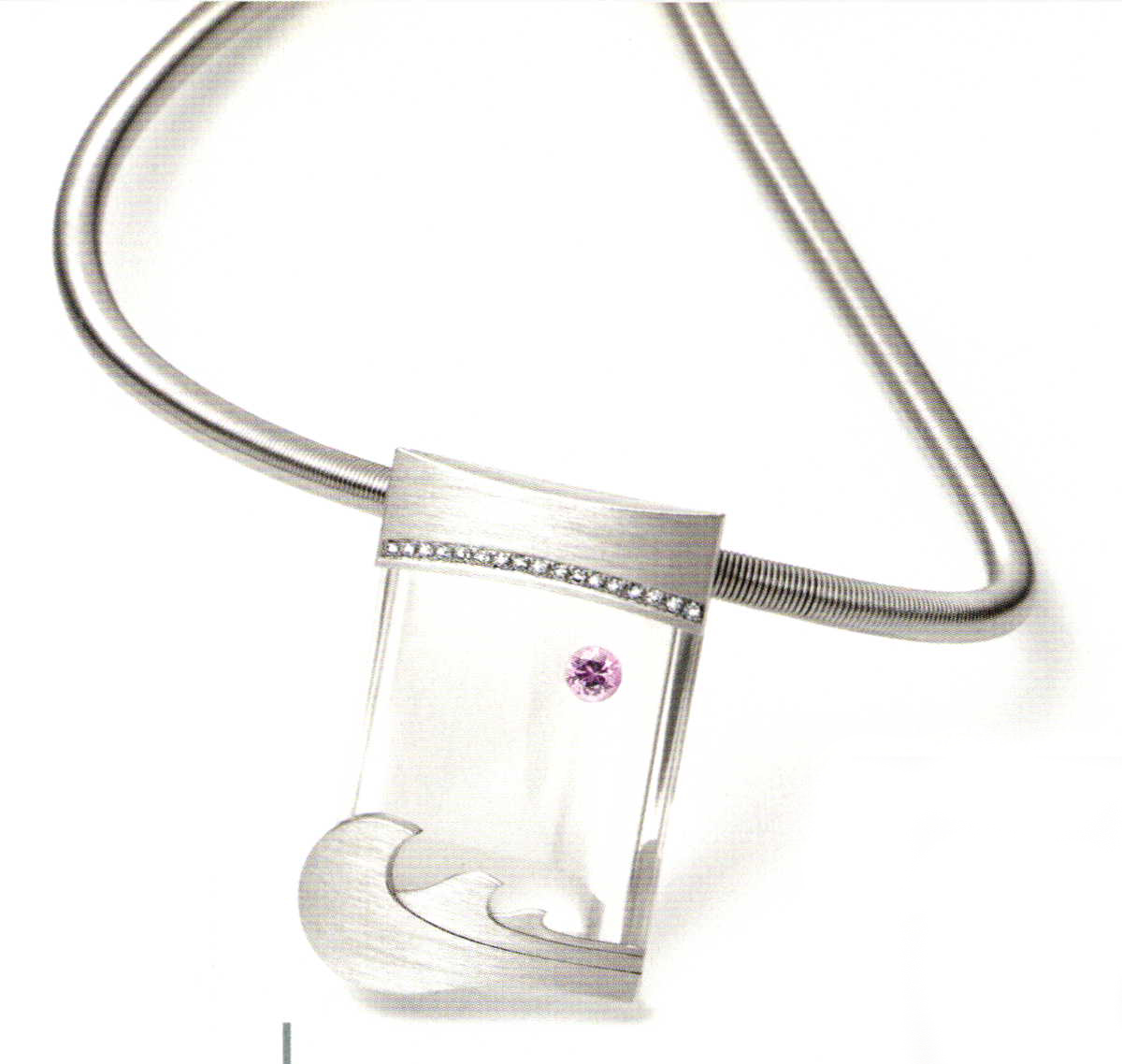 Necklace "Genesis II" by Atelier Bunz, 2006. Pink sapphire set in sapphire glass and brilliant set in platinum