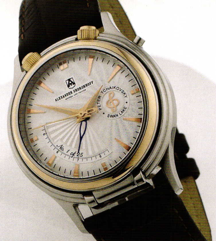 Familiarizing the West with Russia's cultural legacy is one of the main ideas behind the still young, luxury watch brand Alexander Shorokhoff. The model Peter Tchaikovsky is dedicated to the great Russian composer. The chronograph is fitted with an alarm calibre. The sapphire glass base permits viewers to see into the clockwork. Special features include the crowns installed on the top of the watch, so that they are protected against damage. Another refined idea is the pressure button with which one can remove the inner part of the housing through a folding hinge. This allows the wearer to show the clockwork without removing the watch from his or her arm. Additionally, the watch can be folded out, placed on a side table and used as a small travel alarm clock. www.alexander-shorokhoff.de * ahe