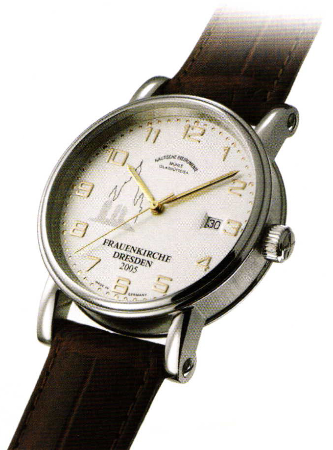 Marking the consecration (October 30, 2005) of the reconstructed Frauenkirche in Dresden, the local jeweler Hoffmann is presenting the special edition of an automatic watch. The wristwatch, manufactured by the Glashütte family firm Nautische Instrumente Mühle-Glashütte, is restricted to 500 pieces. Part of the proceeds will be used to suppor the construction work on the Frauenkirche. The Glashütte watch making company is the only real family firm in the industry and has been true to its Saxon home and its crafts legacy for generations. The Frauenkirche watch made of stainless steel with ETA 2824 clockwork and scratchproof sapphire glass base was therefore created in the tradition of the Ore Mountains art of watch making. www.juwelierhoffmann.de * cete