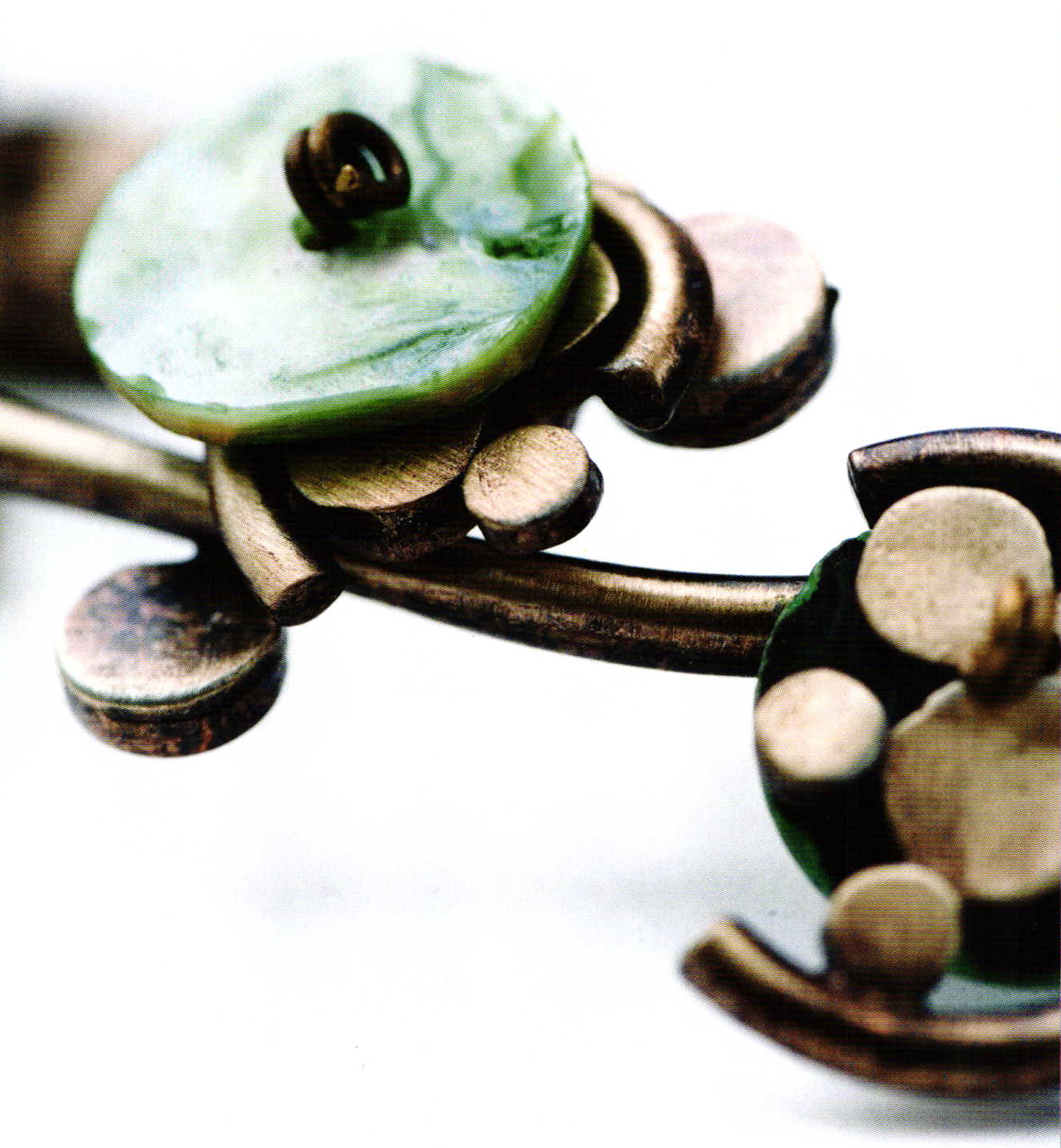 "Fashion jewelry is a class of its own", says Nico Taeymans who started his first jeweler's workshop in 1988 after having made sculptures, small objects and jewelry in metal and wood for some years before. "Like everything in the world of design, it is subject to the trends and movement that surround us." His fashion/jewelry collection took its inspiration from distant cultures: Cast iron curls in the gates of the Maharaja's palace, tinkling bells around the ankles of a belly dancer or sparkling stones from the sultan's treasure chest. In all of this, Nico Taeymans retains a prominent and personal style: Circles are never round and lines are never straight. His jewelry always has a very natural, vibrant form. www.nicotaeymans.be * cete