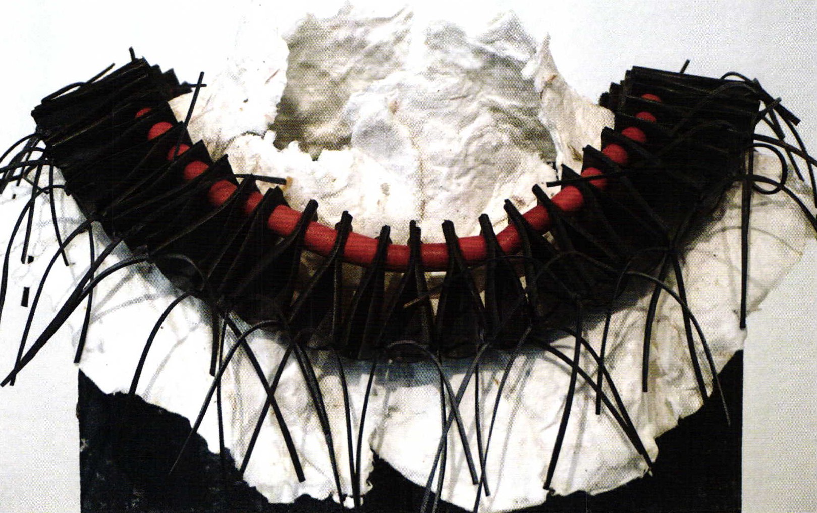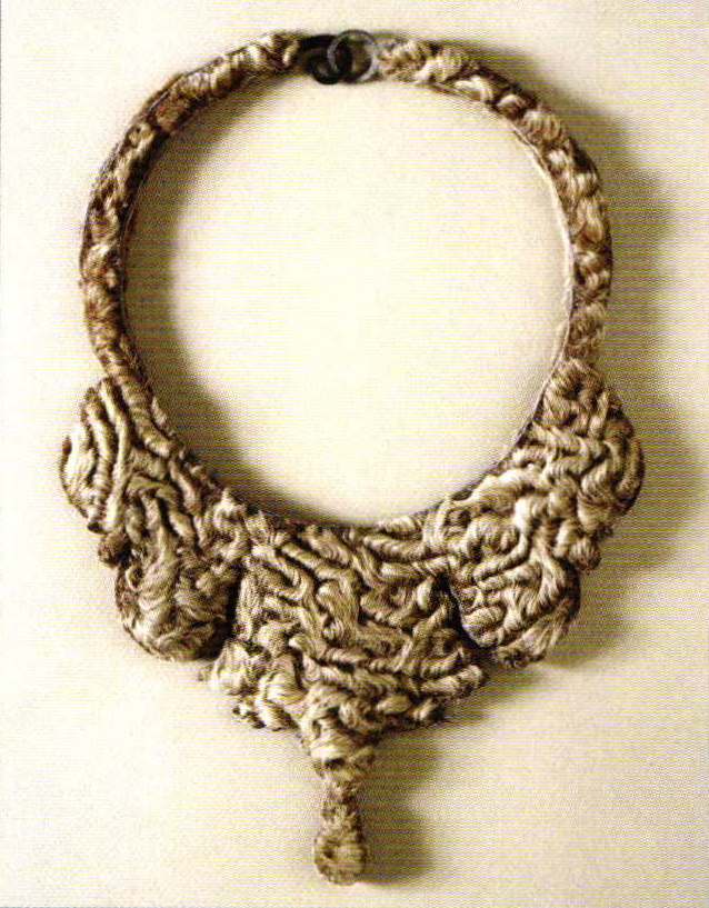 Her present jewel making started as a joke: For an exhibition during a local summer market the Dutch gallery owner Irma Friklink-Grasveld wanted to make jewelry that resisted rain as well as sunshine. Neither textiles nor paper, materials she had worked with before, could be exposed to the outside air. So she had to find another material and started to experiment with rubber (bicycle tires). Today all of Irma's jewels are made of non precious materials that receive an additional value through the form and the meaning that she puts in it as by the woman wearing it. In 2004 one of Irma Frijlink-Grasveld's balloon necklaces received a nomination for the Gelderland Kunstprijs. www.galeriedeanderekant.nl * cete
