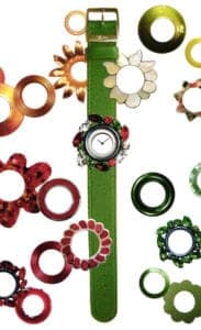 Deja vu is a watch for all occasions, whether the destination is the opera or the discotheque. This fashionable timepiece can be given a whole new appearance in just a few moves, ensuring that it matches every outfit. The heartbeat of this designer watch is a Swiss movement, around which women can create their own individual watch, with attachable bezels and straps. Whether elegant or casual, over 800 attachable decorative disks and a wide range of watch straps and clips mean that there are several thousand possible combinations to lend the watch the appearance to match the occasion. The current range of decorative disks includes designs in silver, stainless steel, mother-of-pearl, glass, gemstone, wood, aluminum, tombac, plastic, felt and a good deal more. www.dejavu.de * ahe
