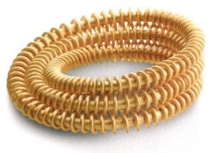 The young Swiss designer Bettina Geistlich designs and manufactures high-quality jewelry from platinum, gold and silver under the formabina label. Two pieces of her jewelry have now received the prestigious iF Product Design Award 2006. A bracelet from the "trema" line and a ring from the "vimina" product line met the approval of the international jury at the iF International Forum Design in Hanover. The trema line, comprising bracelets and rings, is a contemporary combination of strict geometric form and a sensual wearing experience. Two or three flat, meandering bands entwine intricately in one another. Each band is flexible enough to permit slight movement against the others whilst being worn, thus creating a gentle ringing sound. The jewelry is made from gold or platinum. The rings of the vimina line are characterized by the interaction between flexibility and stability, lightness and heaviness. A fine gold strand winds evenly over two, three or four levels, forming a weave that has neither beginning nor end. Cores of gold or blackened silver provide stability for the winding of the gold strand, without restricting the freedom of its naturally flowing movement. formabina@bluewin.ch * ahe