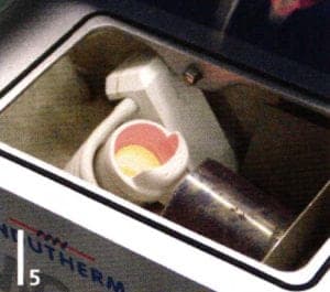 …and placed in the casting chamber. Shut the lid, press a second button and the vacuum starts; just one or two minutes later and the material has melted…
