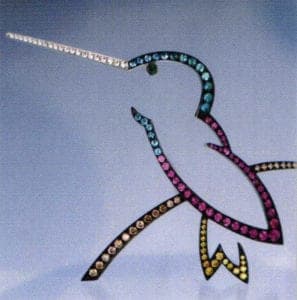 Fashion Forward Honors and Business Wear 1st Place: Gregore Morin, Gregore Joailliers, Santa Barbara, CA, "Hummingbird", 18 karat white gold brooch featuring pink sapphires, Paraiba tourmalines, brown and yellow diamonds, Boulder Opal