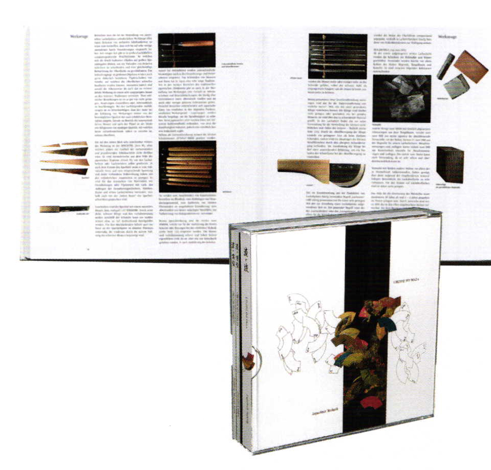 Günther Heckmann studied work with Urushi paint for three years in the United States under the Japanese master painter Tomizo Saratani. In order to take the photos for the book, Heckmann traveled through Japan and visited numerous Urushi workshops. The book consciously does not list any recipes. It is not intended as an instruction for autodidactic studies. The risk of allergy is too great and the range of techniques is too wide. The book is now being translated into Japanese with the cooperation of the Art College in Tokyo and the Geidai University and is intended for release on the Japanese market as a standard reference book, the first western piece on this topic. The book "Urushi" is also available with additional index volumes and with an exclusive book box in solid pear wood. High-quality contents and over 1,350 top-class, color images ensure that this work and its elaborate design can truly be deemed a collectors item. * cp