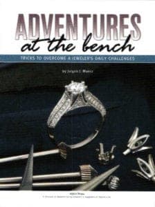 Renowned platinumsmith Jurgen J. Maerz offers his best bench tricks - from innovative uses for clothespins and table salt to ingenious homemade tools - and relates lessons learned from his earliest days as an apprentice. He also provides illustrated step-by-step guides on everything from the basics of fabricating platinum sheet, alloy, and chain to using the laser. Based on his popular column in MJSA Journal. "Adventures at the bench" shows many little ways to work better and faster. Maerz shows how to avoid that a bur does not stay in place when cutting stone seats in prongs or how to clean diamonds with salt or how to eliminate porosity damage. After he has written "The platinum Bench" in the year 2001 Jurgen Maerz has still more platinum tips to give in "Adventures at the bench" like making a sheet by melting platinum or how to make a channel setting in a platinum ring or how to do flush settings. * cp