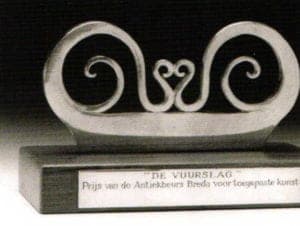 On 14th April, the "De Vuurslag" (firing iron) prize was awarded for the 13th time by the trust of the same name which was founded in 1993 upon the initiative of the Dutch Art and Antiquities Trade Fair. The prize for special performance in art history research is awarded annually to mark the opening of the Art Fair's-Hertogenbosch. The award takes the form of a silver trophy in the shape of a firing iron and a monetary prize of 12,000 euros. The prize was presented to Ludo Helsen, cultural representative of the province of Antwerp by His Excellence Luc PA. Carbonez, ambassador of the Kingdom of Belgium in the Netherlands. Finally, the prize received its place of honor in the exhibition rooms of the Silver Museum. www.zilvermuseum.be * ahe