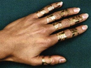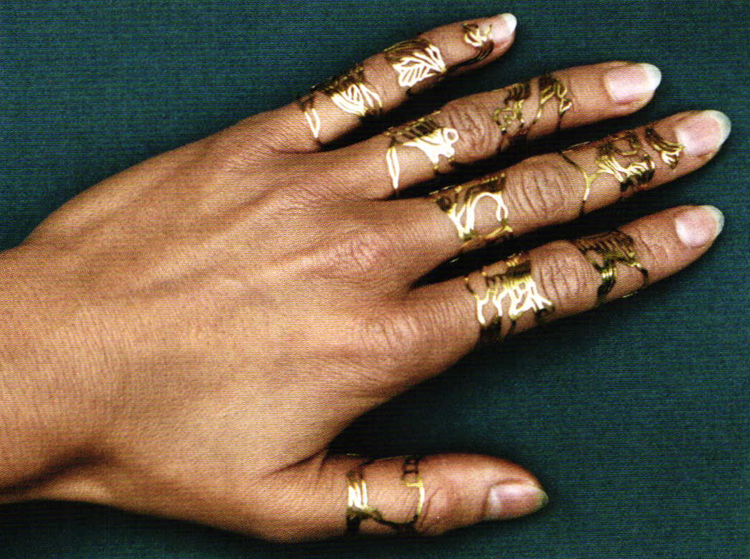 The classic objects in goldsmith art - rings, necklaces and ear studs - are starting to break away and are losing their definite character. This is particularly true of the objects sawed and bent in fine gold, which the artist submitted to the competition. The wedding jewelry she designed is particularly striking. These are nine finger sheaths made of fine gold, which conjure up associations with Mehndi, the artistic, Indian technique of ornamental body painting. Just like the henna tattoos that fade within two to three weeks, the filigree wedding jewelry is also intended for temporary use, to be worn once on a very special day. www.hwk-hannover.de * ahe