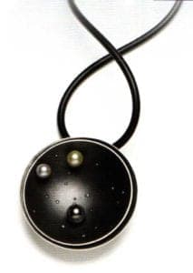 1st prize - pendants: 'Planétaire', Stefan Zimmermann, Herisau. Silver, diamonds, 3 Tahiti pearls