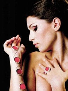 One distinct trend is taking shape in the direction of color. Precious stones and plastics, enamel or leather - color is one of the pre-eminent topics in the 2005 designer jewelry scene. They may be heart-shaped pendants painted bright red as with Drachenfels Design or long chains made of round interchangeable felt tiles as with Michaela Binder. And you can bet your bottom dollar that there are also magnificent precious stones in fantastic colors because both Erich Zimmermann and others like Michael Zobel put them in the focus of their large-format pieces of jewelry.