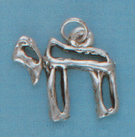 This symbol, commonly seen on necklaces and other jewelry and ornaments, is simply the Hebrew word Chai (living), with the two Hebrew letters Cheit and Yod attached to each other.