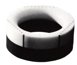 Appenzeller's more recent work shows above all else a playful appreciation for the materials he has come to know so thoroughly. 1982's collection of woven jewelry investigates this type of item—as necklace and as bracelet in particular—so thoroughly that it seems unlikely that other designers would care to compete with him. We see woven brass, stainless steel, silver and gold in a bewildering variety of configurations. Other evidences of a mind at play emerge only after much observation: a simple gold bracelet attached at each end to a semicircular piece of plastic which skews this way and that to allow passage of the hand, bracelets of corian (plastic impregnated with an aluminum oxide additive) seeming heavy as lead next to their ordinary plastic counterparts, and a diamond ring which actually conceals the diamond: "I designed the setting in such a way as to make it a logical necessity for the diamond to be there," observes Appenzeller.