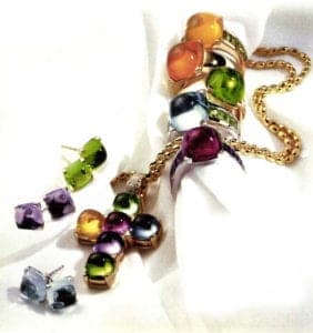 One of the most pleasant ways of the getting ones daily dose of vitamin color is to wear it on the finger, arm or neck as an item of jewelry. Being a goldsmith or jeweler is therefore also to act as a color and style consultant. The spontaneous response from many people to the question of their favorite color is red and green or blue and orange. They often mention two colors that are opposites on the scale of color. This is by no means contradictory but instead is born of the desire for harmony. If one focuses on a color for long enough, the brain will automatically and unconsciously switch to the complementary color. People seeking a fulcrum within the complexity of their own personalities will find a tangible pledge on balance in a whole series of gemstones. Nature holds astonishing reserves of these treasures in many places, while experts transform them into wearable jewelry.