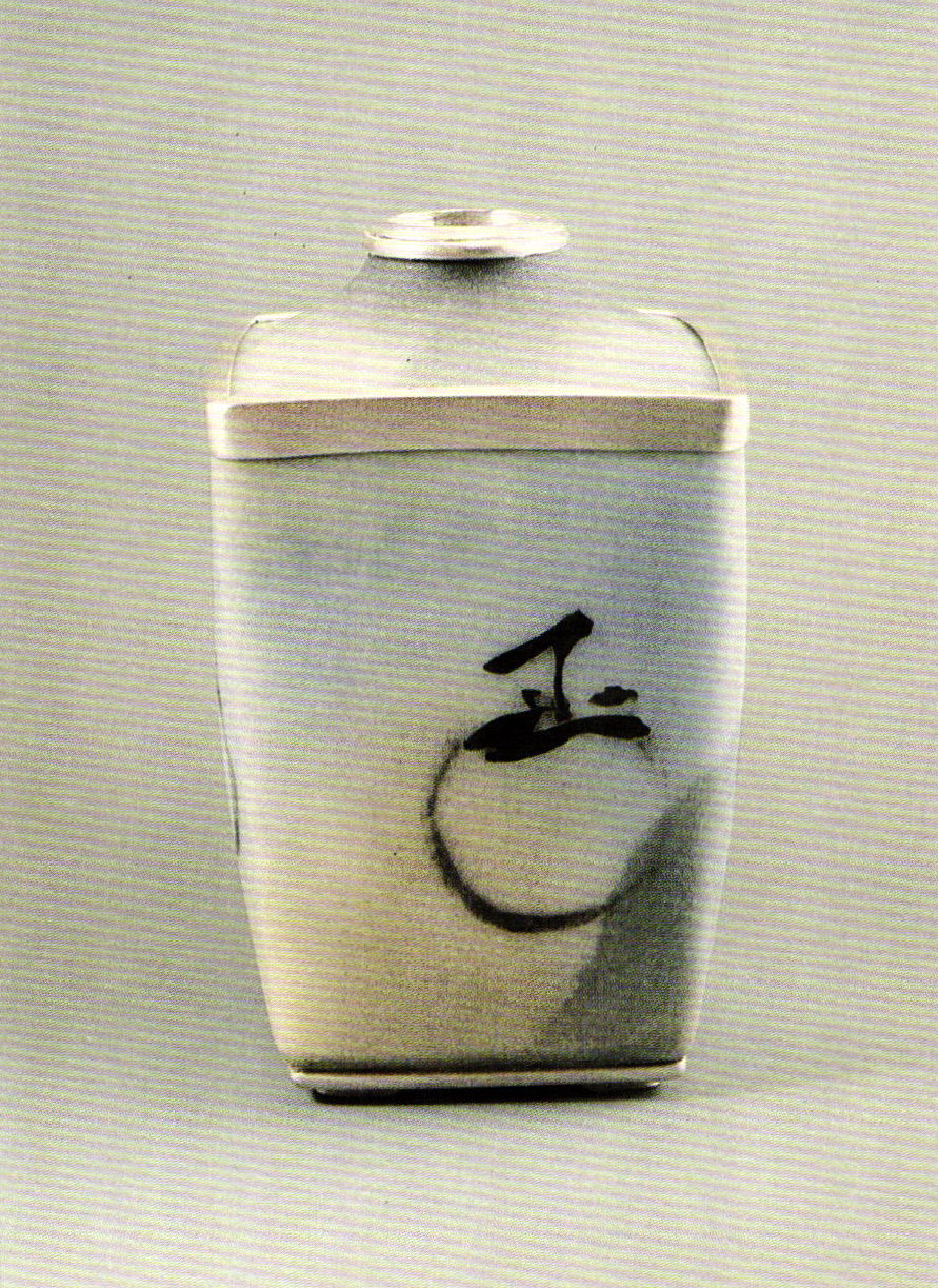 His Mu Chi's Koan refers to o specific work of Asian art: a Chinese brush pointing of six persimmons by Mu Chi (Southern Sung period). The reference is quite literal: the pointing is faithfully reproduced around the sides of a small vase. But there's a second Asian influence at work here — the Japanese tea ceremony. Harlan Butt often makes pieces for use in the tea ceremony, and Mu Chi's Koon, with its unassertive, respectful approach, its muted, semitransparent colors and its poetic understatement, shores the sensibilities of tea.