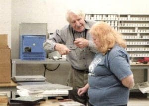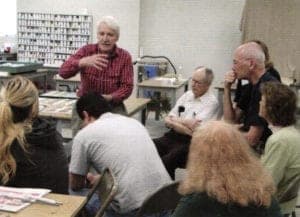 From March 21 through March 24, 2007, The W.W. Carpenter Enamel Foundation held a Large Scale Enamel Workshop featuring Harold Balazs of Mead, Washington. Participants enjoyed learning Harold's inspired and creative working methods, and each eagerly put his suggestions to work immediately. Below are photos of some of Harold's instruction and participants busily creating; to the right are images of some of the participant's work.