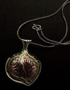 While much of Harold Hasselschwert's work addressed abstract imagery, that was by no means the rule. He enjoyed storytelling and enamels/jewelry was a wonderful medium through which to tell a story. Although his interests were broad, Hal most liked classical mythology and fantasy. In these themes, Hal drew inspiration for a number of figurative works throughout his career. Often, as with his untitled pendants from 1977 and 1978, such pieces were expressively modeled in wax and cast in silver to retain their gesture. Later, enamels and precious stones were added to heighten their impact. With lost-wax casting, Hal found a way to obtain the spontaneous forms unapproachable in constructed work. The rich textures of his castings balanced perfectly with the contrasting gloss of enamel.