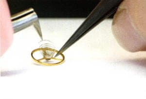 With a steady hand: a watch maker at Chopard Manufacture installs the balance spring