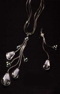 In colored stones, white, dark brown, and black were popular for the fall, with the occasional earthy shades of green and yellow to liven the pieces up. Pinks were seen in very light pastels, such as morganite, rose quartz, or pink tourmaline. At the other end of the scale, multicolored mixes were still a hit with buyers who wanted to stand out from the crowd.