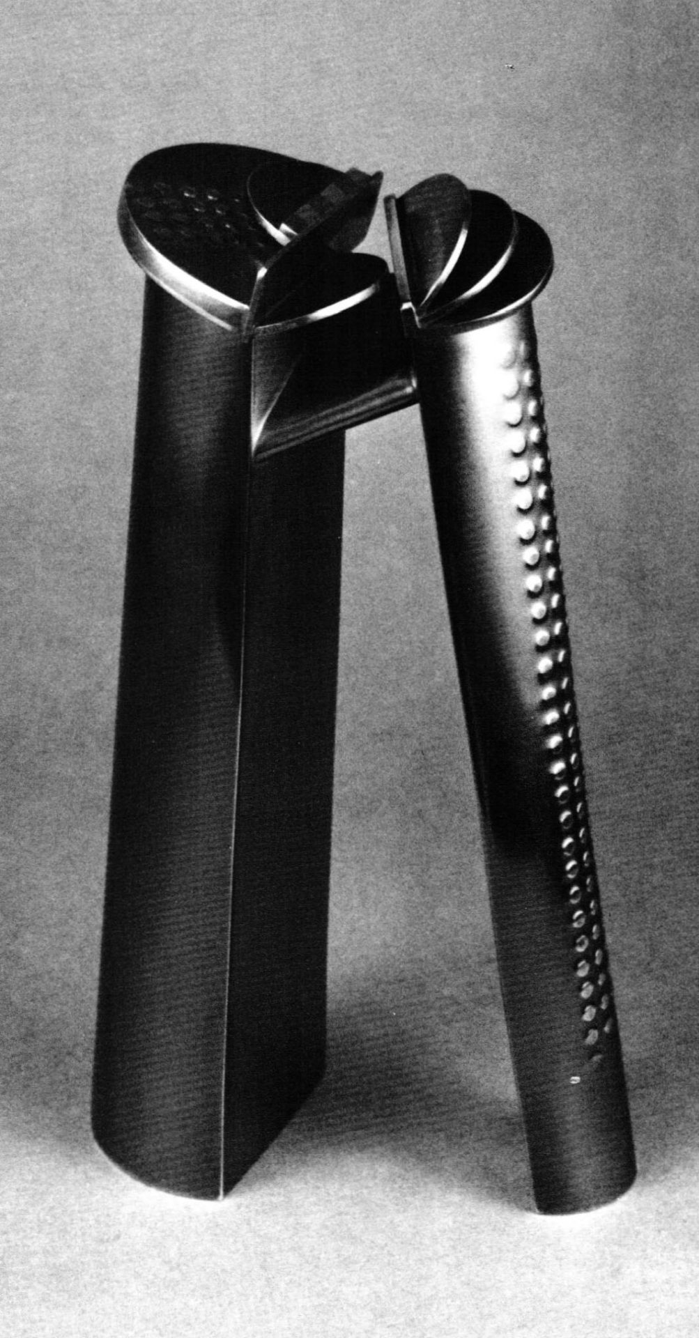 "People say the pieces looked very aggressive," Helen Shirk explained. "Some people can't handle pointed things — they're too threatening. They don't have to wear them or sit on them. They just have to look at them. I saw them as being powerful. Now I was back in an exotic desert environment, with vivid flashes of color in the midst of subtle neutrals, with bizarre growing forms, and, of course, space. The variegated patination makes reference to the tonality and repetitive pattern of the desert, as well as to its unpredictability."