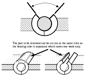 Then a section is removed from the tube, on the opposite side to the existing slit. The amount of the section that is removed will dictate the degree to which the hinge can open: will determine how far the hinge itself will be able to rotate before it stops.