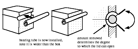 Once we have done this, we trim the bearing tube back to the sides of the box and then install the actual hinge knuckles into the bearing tube, just as before.