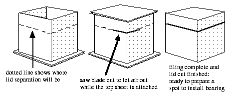 The tube that we use for the bearing has a slit in it, pre-existing, and this slit is placed facing the inside of the box. It is important in shaping the hole to receive the bearing tube, that it be as parallel and as even as possible.