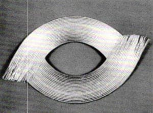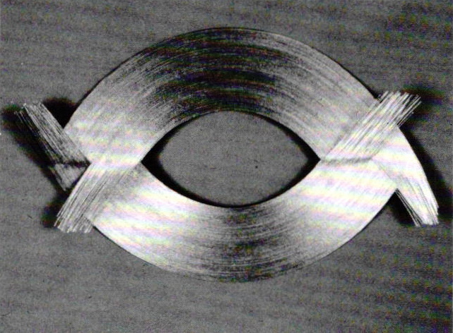 In making my papercord jewelry, I realized that form can have meaning beyond mere abstract beauty (see Table of Contents page for illustration). The contrasts between this organic material and its artificial metallic color, and between the traditional applications of papercord and these abstract designs, comment on the evolution of man's position in the universe. We are part of the natural world and of a historic and cultural world of our own making.