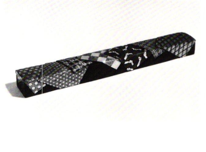 I was also charmed by the conceptual designs of Issei Miyake, a world-famous Japanese fashion designer: first, his basic idea derived from that traditional kimono, a combination of rectangular shapes that, when worn, take on a new shape, creating a contemporary look; on the human body, people cannot tell what it is. It looks like an odd-shaped throw rug. It changes form because of the choice of material—soft, flexible and stretchable—in this case thin knitted wool.