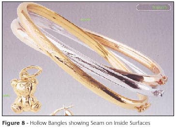 This review has tried to show that hollow carat gold jewellery made from strip and tube is a well-established sector of the gold jewellery industry and that a wide range of equipment exists for its manufacture. A lot of the equipment is highly specialised; much is very versatile. Hence, in entering this field of activity, it is important for manufacturers to understand the ways in which the various machines operate and interact and to know their capabilities. In addition, they should test the quality and reproducibility of product that can be obtained on the machines and to look at capital and maintenance costs of the machines as well as their lives. They should also be aware of the service and support that the individual equipment manufacturers offer. Today, there are several good equipment companies that offer a range of machines for specific tasks, which can be purchased separately, or who will design and install an integrated production line. There is also at least one company offering a particularly versatile machine capable of a range of shapes and sizes. The range of hollow products grows steadily as the manufacturers' ingenuity increases.
