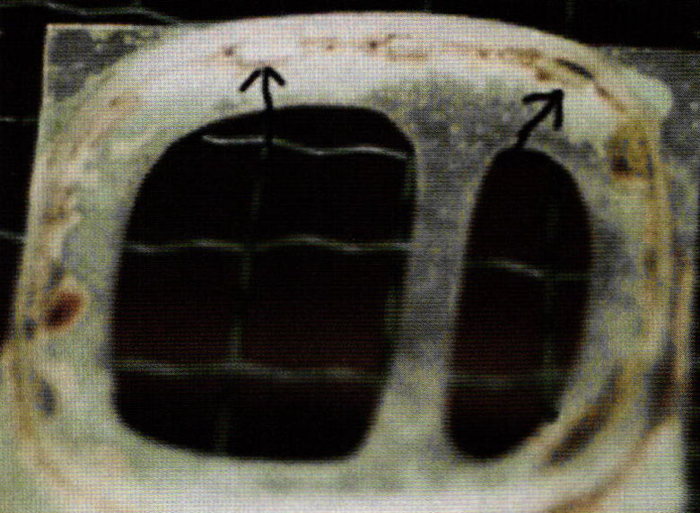 Level the back plate and bezel very carefully then lay the bezel on top of the back plate. It is very important, that the bezel doesn't get bent in any way during this working cycle! Add soldering agent and lay from the inside of the rim (see little arrows in the photo to the left and sectional view below) little snips of silver solder.