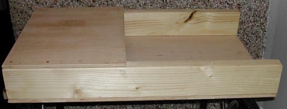 The construction process is simple enough if you have basic do-it-yourself skills. Firstly, assemble the timber frame as shown below using a length of 4x2 inch planed timber and a sheet of 1/2 inch plywood. In my case the base was 39 inches long by 16 inches wide. The plywood base was screwed to the bottom of the side members and then the top platform was screwed at one end.