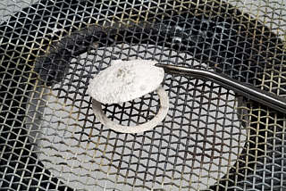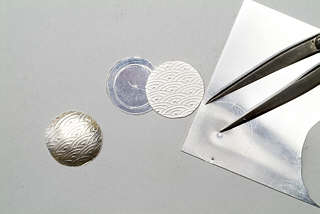 Cut out the disks. Use dividers to mark two 25mm (1-in.)-diameter disks on 20-gauge (0.8mm) sterling silver. Repeat on 26-gauge (0.4mm) sterling silver. Use a disk cutter or a jeweler's saw to cut out the disks.