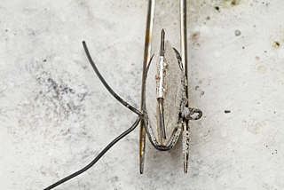 To install the bail, slide the wire through the front hole of the bail. Slide the tubing on the wire, place the bail loop over the tubing, and then slide the wire through the back hole in the bail.