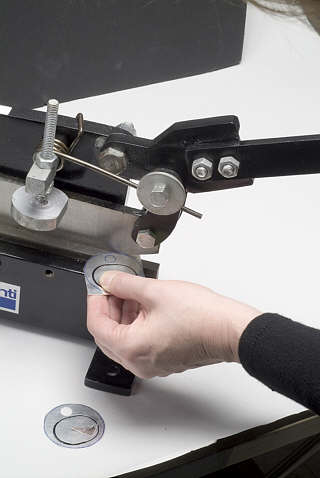 Install the tube bail. Cut two 25mm (63/64-in.) pieces of 9.5mm inside diameter (ID) heavy-walled sterling silver tubing. Use the 9mm holes on the bearing plates as a guide to saw holes in the domes of each locket case.