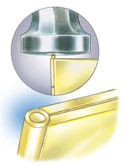 Jewelers and metalsmiths have had to make their own tools throughout the ages to accomplish different tasks at the jeweler's bench. One tool a jeweler can't do without is a hammer. Today, many styles of hammers, made in a variety of shapes and materials, are available to the jeweler. The hammer used here as an example of how to make modifications is used for riveting, shaping, forming and working on rings for sizing. The hammer has one round/slightly contoured end (called the pean) one chisel-shaped end and a hardwood handle..