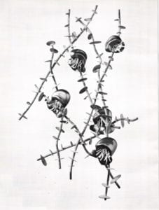 The use of thin Flexane pads for embossing achieves a result unique to this process. The metal to be embossed should be soft (either copper or silver) and annealed. Pierced plates of hardened (16- to 18-gauge) sheet metal, such as what one might use for roll printing, will make an embossed design which is more raised than a roll-printed one and without distortion. Plates of hardened sheet metal with a raised design (such as one with wires soldered to the surface) will create an impression on one side and a raised design on the other side, each with a different and unique appearance. The pressing of any number of odd found objects is possible, from wire meshes to key chains, from waffle irons to washers (the flat kind) The thin Flexane pads become very ragged-looking in a short time, but their performance is not affected.