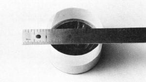 Now you are ready to mix the plastic steel. You will need a gram scale, a ruler, a calculator, a watch, waxed paper cups and a sturdy flat metal spatula (not a rod) for mixing. Be organized, and work in a well-ventilated area. The following formulas may look complicated, but careful measurements and calculations are necessary when mixing small amounts to both ensure good results and avoid waste. First, measure (in inches) the inside height and diameter (and divide by 2 to get the radius) of your die.