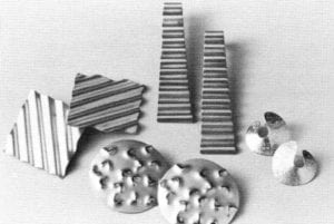 Instead of discussing the use of die forming for "production," I would like to suggest the idea of multiple units. A unit could be a complete entity (a pendant, for instance) or it could be a part of a group assembled to create an object (as in a link bracelet). Multiple units can be identical or altered in some way to make "variations." In addition, a single die can be used to produce varied objects, such as mirror-image opposites, or parts with the same relief but a different outline or silhouette. The possibilities seem endless.