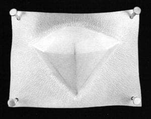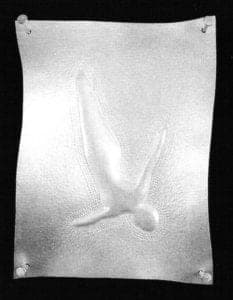 While Kate Wagle's recent work is allegorical, it also uses a serial structure to convey its meaning. Images of Perfection is a series of individual pieces which develop into a kind of poetic allegory when they are mounted on the wall, side by side, in the linear installation that the artist intends for them. In this work, Wagle immortalizes familiar images that we either think of as having a short, perfect moment of duration, like the peak point of a dive, or, in the case of the diamond, as an object that lasts forever. Often artists purposefully use familiar images that we either think of as having a short, perfect moment of duration, like the peak point of a dive, or, in the case of the diamond, as an object that lasts forever. Often artists purposefully use familiar and commonplace images in their allegories, specifically because they imply a multitude of meanings. Craig Owen writes that "allegorical imagery is appropriated imagery. The allegorist does not invent images, but confiscates them." The allegorist, in many ways, is an interpreter. Wagle suggests that solidity and fragility often coexist. The culminating object in this series is a formal and imposing 24k gold sheet. It is all substance with no image, and seen in the context of the other images, it challenges our basic assumptions not only about what we value, but of how we have come to value it.