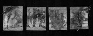 Pamela Lins explores a variety of innovative ways by which the combination of words and images can tell a story or describe an event. Often, the text is somewhat obscured and fragmentary as in Lins' dish stories, in which crater-like bowl shapes hermetically confine an array of visual and verbal information in various stages of decay. The collection of words and images inside the bowl's rim is offered randomly. We may arrange them into whatever narrative we choose, and we are free to change or reverse that order at any time, depending on the information we bring to the piece. Each viewer extracts new and different scenarios. In this work the text is used as an ambiguous element that produces a quandary, rather than using words as a clue for deciphering specific meaning.