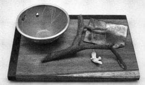 In Asian art, the narrative tradition has often paired text with imagery. In Japan, for example, the "poem-painting" has been a tradition that has flourished since the twelfth century, when it first appeared. This narrative form commemorates particular events or stories by identifying the thoughts of the figures depicted within the paintings. Having lived several years in Japan, Harlan Butt finds particular influences in this long tradition. In genres such as the Japanese "poem-painting," each work had a specific intent, but in postmodern times, narrative is more likely to be idiosyncratic, laced with double meanings, and informed by the artist's personal experience. One of Butt's installations, entitled 10 Bulls in a Quantum Field, is a series of ten wall-mounted reliefs that combine the verbal and the visual in mutually supplemental ways. 10 Bulls… is Butt's interpretation of the 10 Oxherding Pictures, a traditional series depicting the ten stages of enlightenment in Zen Buddhism and a series that has been painted by many Asian artists. In Butt's contemporary interpretation, each relief has a resident text that reads as a poetic caption to the images. Image and text work together to reveal the story of the artist's relationship to his work and the specific nature of his creative process. As in his other work, Harlan Butt chooses a traditional narrative format to elaborate on the relationship of his objects to the rituals from which they are derived. The artist also serves as narrator of the written story. Viewers move on and out between the images and the text, which together create memory-filled narratives, that are poignant, meditative, and personal.