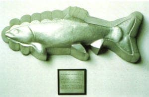 Sportsmanlike Project is a sterling silver "trophy" in the form of a gigantic fish-shaped jello mold. Its accompanying text stares: "YOU MAY FIND IT DIFFICULT TO DRAW A SHARP DIVIDING LINE BETWEEN GOOD SPORTSMANSHIP AND THE THRILL OF REFLECTED POWER". "Is the narrative about ethics or abundance?", we ask. Studying Lost Time is an over-sized colander on which terse quotes are printed; such as: "LOST TIME OCCURS WHILE WAITING FOR SOMETHING TO HAPPEN" and "THE ANTIDOTE IS USEFUL OCCUPATION". The old wives tales, poetic clichés, and truisms that accompany this object reflect the myriad interpretations associated with such commonplace forms. These words also suggest the narratives of those that speak such clichés. Each object triggers familiar memories, and a second narrative, embellishing the first emerges. The objects Norton represents often enter the circuit of collectibles, and thus they are assigned a value disproportionate to their intrinsic worth, due to scarcity, impracticality or simply nostalgia. The value or meaning of the object is thus determined by context. Viewers identify with this assigned meaning by placing themselves in the particular narrative of whatever marketplace has assigned this worth. Though text embellishes these "projects", Norton's use of language is far from decorative. Instead she uses language to set up relationships which engage viewers in narratives that question the methods by which we prescribe meanings in life and in art.