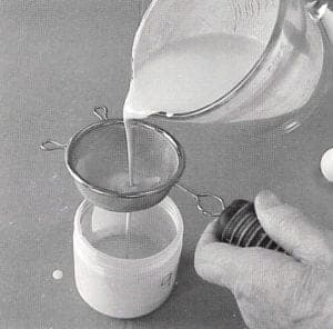 The final step of mixing is straining the enamel, Figure 5. A tea strainer is quite adequate. With a little practice, the coating thickness desired can be obtained rather easily. Once the procedure is understood, weights and measures will probably be of little concern.