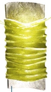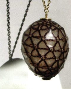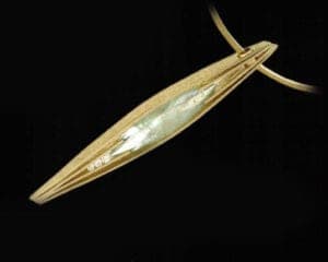 Monika Jacubek, pendant 'Cocoon'. Yarn, 18 karat yellow gold, brilliants
